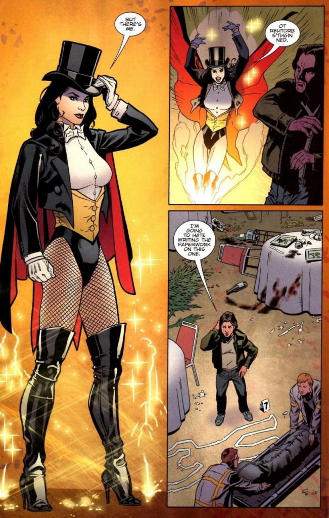 Caracterizada por su sombrero de copa, su atuendo de maga, mallas de red y hechizos exclamados al revés, Zatanna es un personaje que no tiene muchos proyectos en comic, pero los que obtiene suelen ser de una gran calidad, tales como el volumen del cual hablamos y que concluyó con su número 16, del 17 de agosto de 2011.