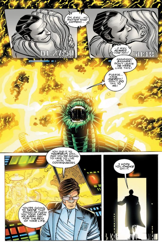 Tiempo después, Banner visita al prisionero. Blonski se jacta de haberle arrebatado a Betty, a lo que Bruce responde poniendo una videograbación de Emil y su esposa Nadia, en la que ella le dice que lo amará por siempre.