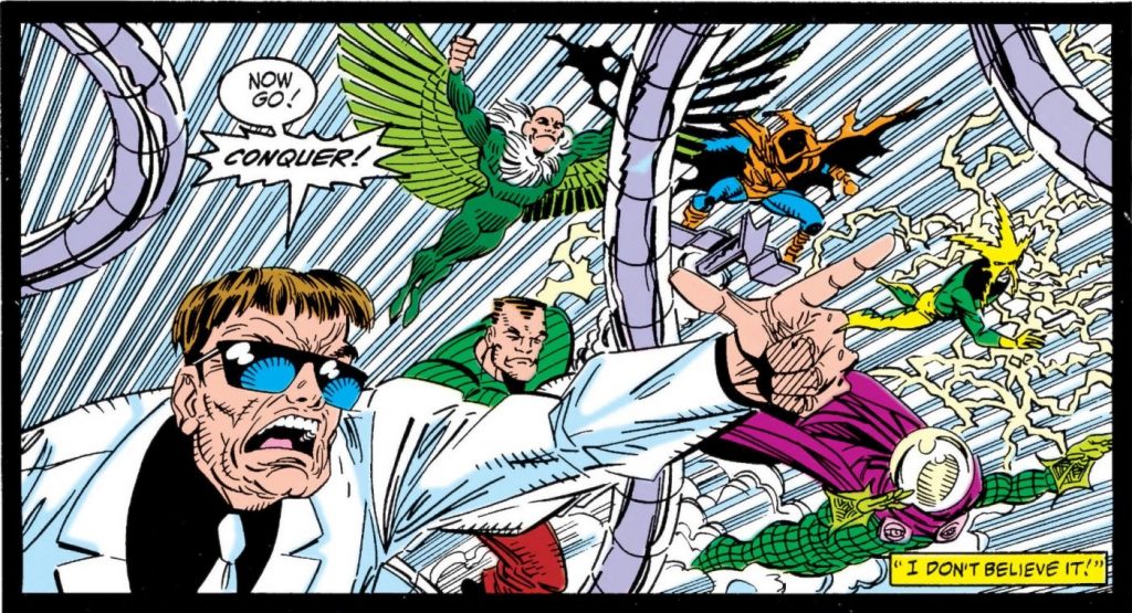 A tantos años de su primer ataque a Spider-Man, bastante había ocurrido en la vida de “los malos”; por ejemplo, Kraven se había suicidado y Sandman estaba reformado, llegando a ser un Vengador de reserva (se integró al equipo al mismo tiempo que Spider-Man, en el #329 de Avengers, con portada de febrero de 1991).
