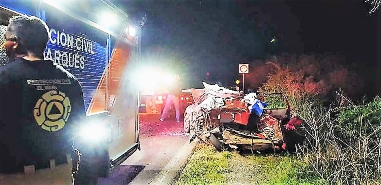 Protección Civil logra rescatar a dos personas atrapadas en accidente vial