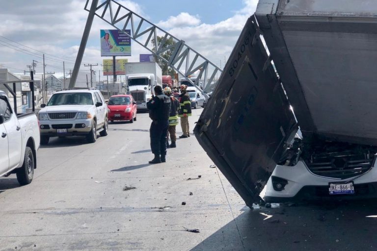 Atienden volcadura de un tráiler en la carretera federal 57