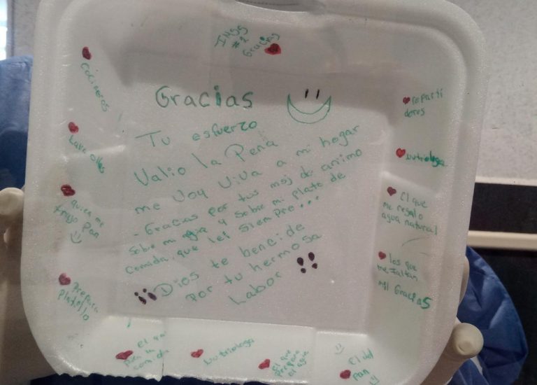 Paciente recuperada de COVID agradece en charola de alimentos al IMSS-Querétaro