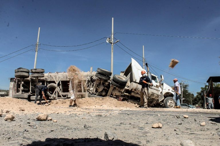 Camión de volteo choca 4 automóviles en Lomas de Casa Blanca