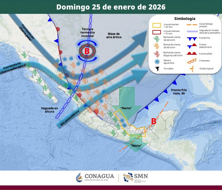 Tormenta invernal mantendrá lluvias intensas, frío extremo y evento de Norte