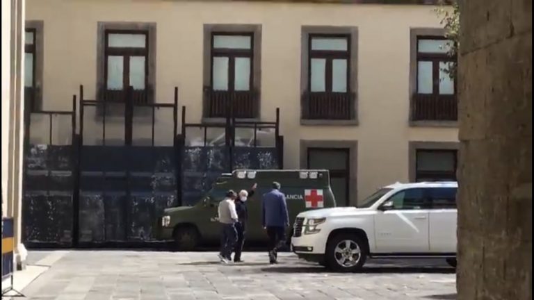 Con cubrebocas, AMLO recorre Palacio Nacional