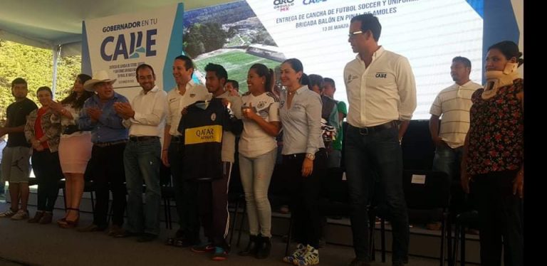 Entrega Nava cancha de futbol en el COBAQ 17.