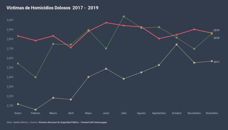 Homicidios dolosos crecieron 2.49% en 2019; el año cerró con 34,582 víctimas