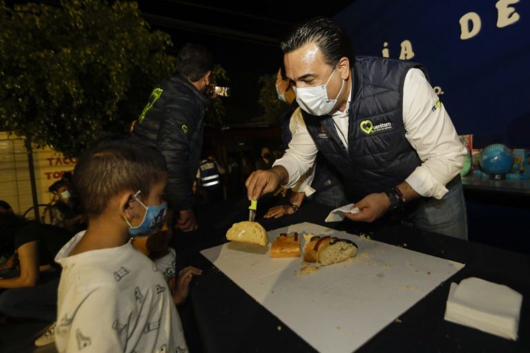Comparte Luis Nava Rosca de Reyes con familias de Lomas de Casa Blanca