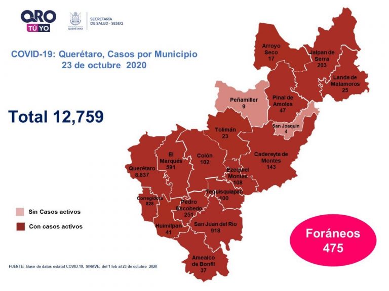 Se suman 12,759 casos de Covid-19 en Querétaro