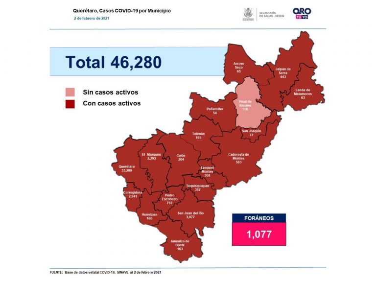 Querétaro acumula 45,780 casos de Covid-19