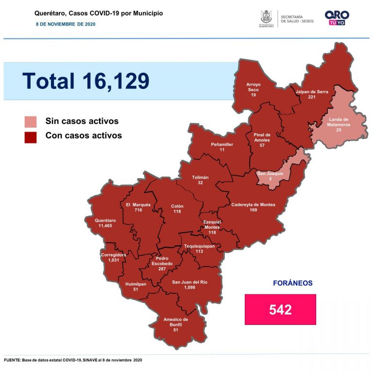 Querétaro supera los 16 mil casos acumulados de Covid-19
