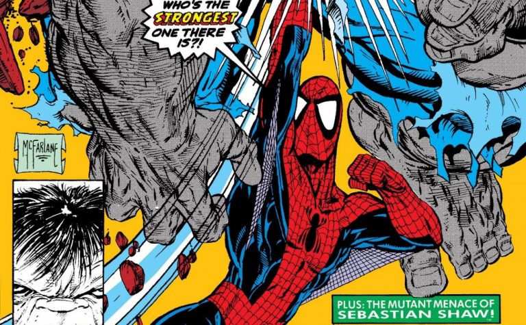 Spider-Man, de un golpe, manda a Hulk a la órbita terrestre.