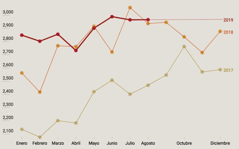 Al mes de agosto, cifra de homicidios dolosos en 2019 supera en 747 a la del 2018