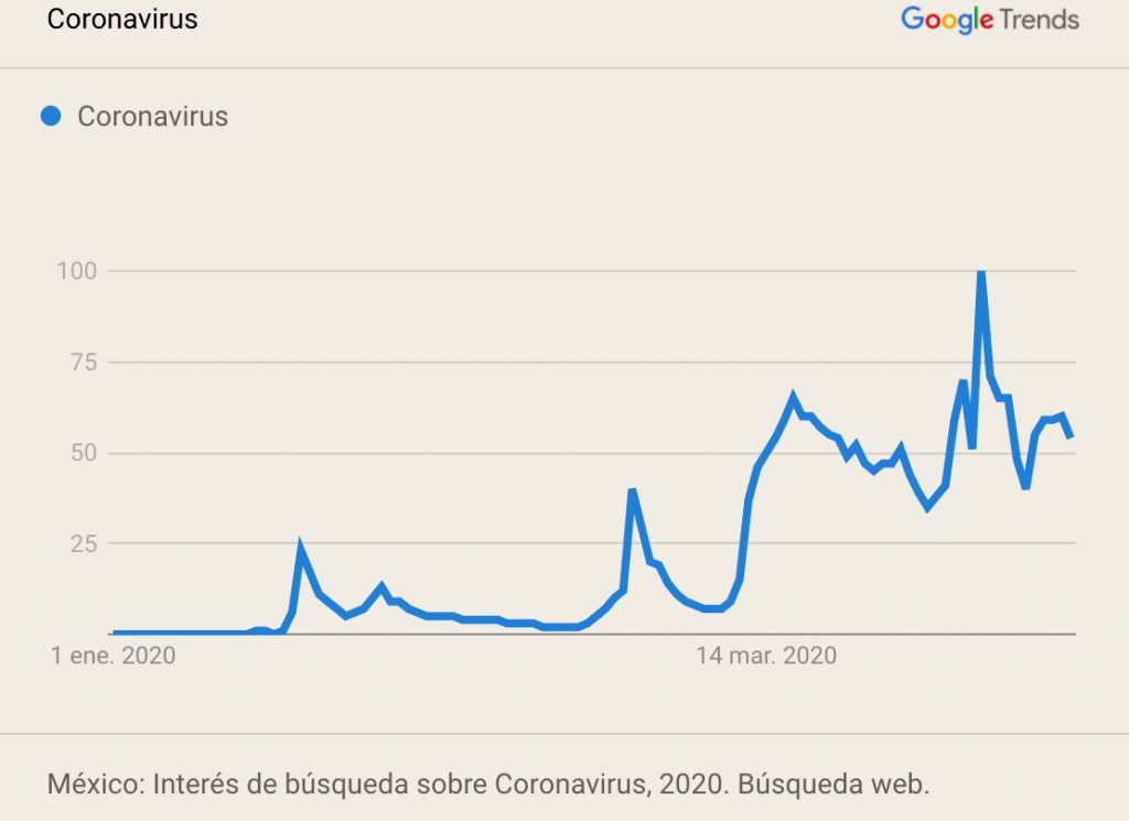 Durante el año el interés de los mexicanos en Covid-19 ha variado, con picos de búsquedas pronunciados el 28 de febrero -cuando se detectó el primer caso en territorio mexicano-, el 17 de marzo y el 7 de abril.