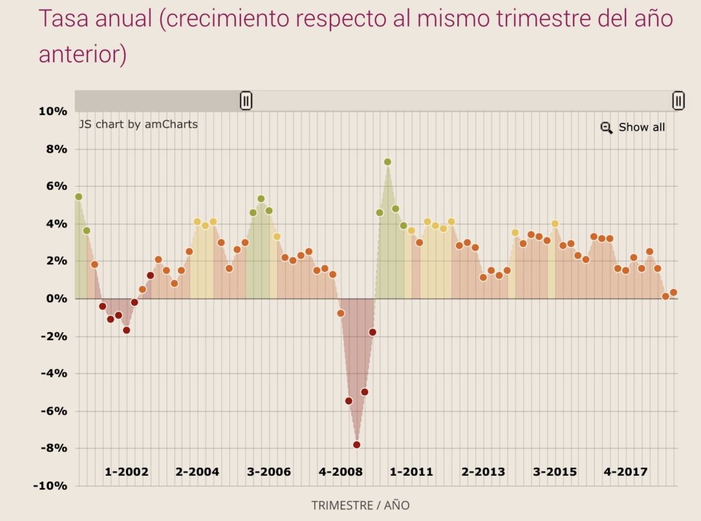 La desaceleración económica de los últimos cuatro años ha sido nítida en estos tres indicadores. En otros se han registrado ciertos crecimientos que nos tienen hoy en el famoso 0.1% de crecimiento del PIB y no en una contracción como en las crisis de 2000-2003, 2008-2009 o 1995.